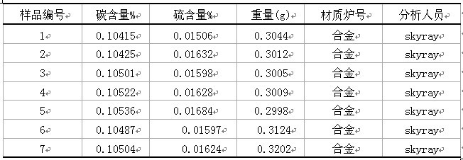 試驗(yàn)數(shù)據(jù)表明:高頻紅外碳硫儀CS-168型測(cè)試有色金屬及合金中的碳硫含量,結(jié)果準(zhǔn)確,且重復(fù)性好,簡(jiǎn)單,快速?梢詮V泛的應(yīng)用在各種各樣的合金樣品中。