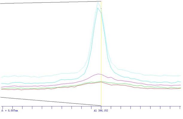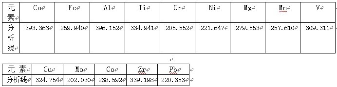 根據(jù)ICP軟件譜線(xiàn)庫(kù)提供所有元素不同譜線(xiàn),首先選擇被測(cè)元素靈敏度高的譜線(xiàn),其次考慮不受樣品基體及被測(cè)元素相互之間干擾小的譜線(xiàn)的原則,選擇分析線(xiàn)如下。