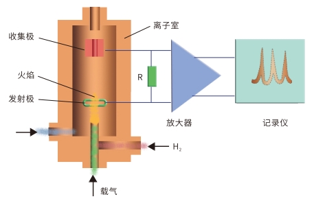 氫火焰離子化檢測器(FID),它是典型的破壞性、質(zhì)量型檢測器、是以氫氣和空氣燃燒生成的火焰為能源,當有機化合物進入以氫氣和氧氣燃燒的火焰,在高溫下產(chǎn)生化學電離,電離產(chǎn)生比基流高幾個數(shù)量級的離子,在高壓電場的定向作用下,形成離子流,微弱的離子流經(jīng)過高阻放大,成為與進入火焰的有機化合物量成正比的電信號,因此可以根據(jù)信號的大小對有機物進行定量分析。